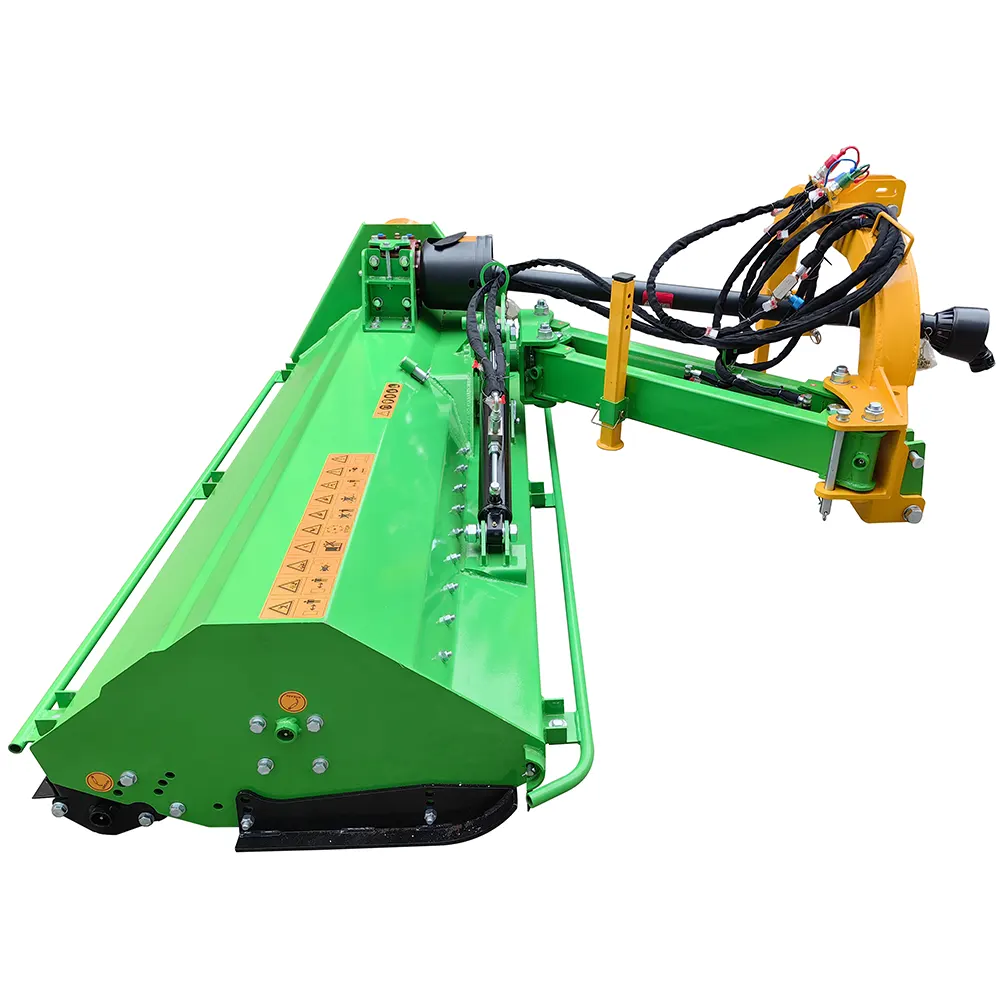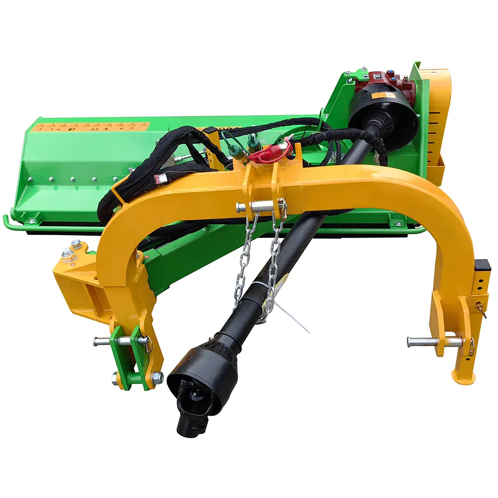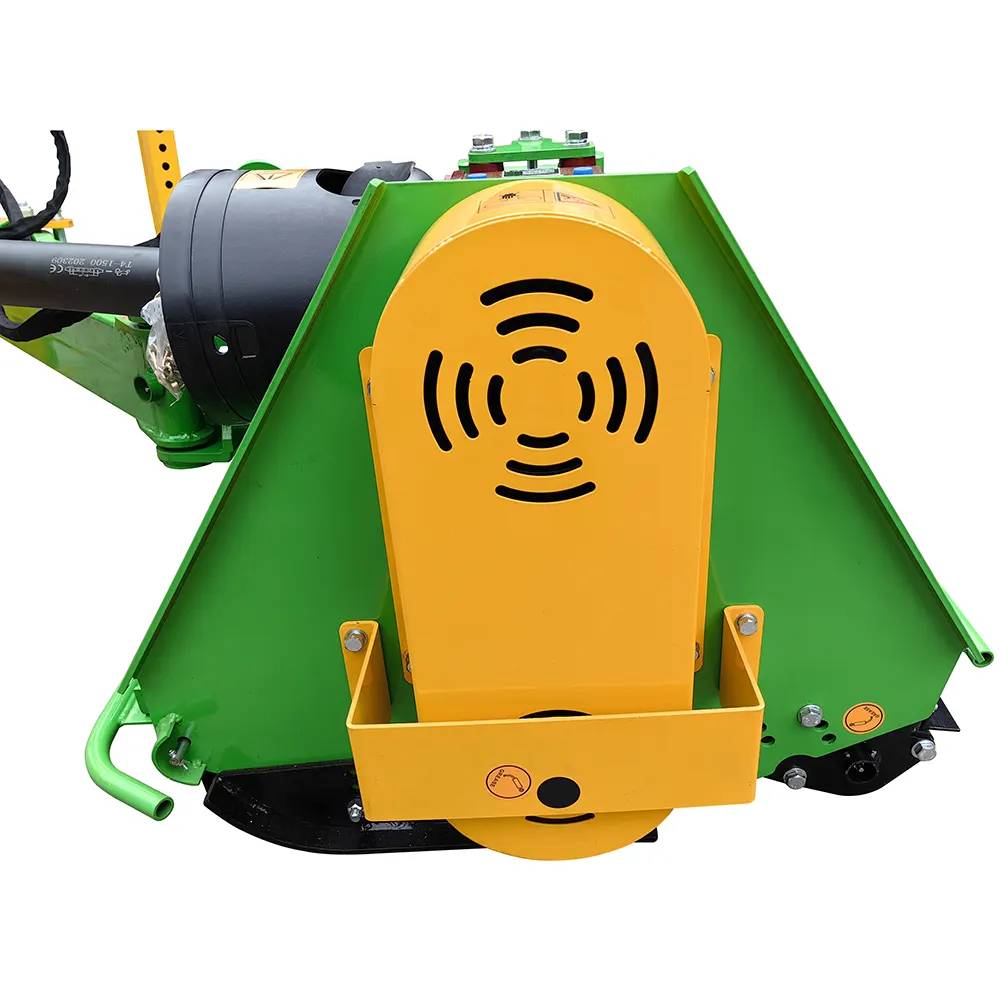 Safety is built‑in with dual safety valves that prevent the mower from dropping too quickly during lowering. Integrated transport lock pins keep the unit secure while in transit. The replaceable counter knife and front safety flaps help maintain optimal chopping performance while minimizing debris ejection.