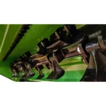 The MD-135 uses 800 g / 1.76 lb forged, galvanized hammer flails mounted on a 2200 RPM electronically balanced rotor driven by a 3-belt system. A heavy 5.3″-diameter self-cleaning rear roller keeps cut height consistent over uneven terrain. Power is delivered through a Comer gearbox with a 540 RPM PTO, while the rotor runs on SKF ball bearings with CNC bearing seats for durability and smooth operation.