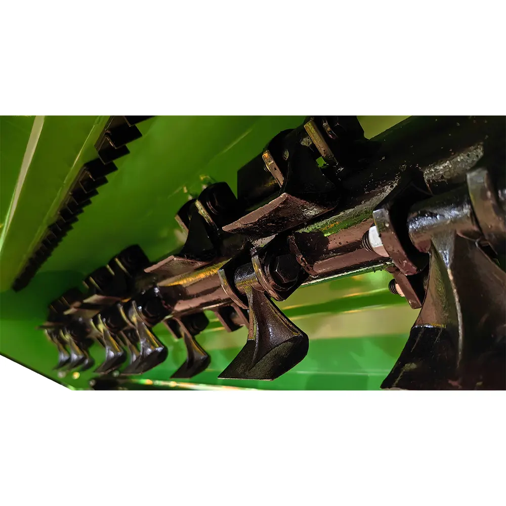 Engineered for dependable performance, the MD-175 uses 800 g / 1.76 lb forged, galvanized hammer flails—26 total—mounted on a 2200 RPM electronically balanced rotor driven by a 4-belt system. A heavy 5.3″-diameter self-cleaning rear roller keeps cut height consistent across uneven terrain. Power is delivered through a Comer gearbox with a 540 RPM PTO, while the rotor runs on SKF ball bearings with CNC bearing seats for durability and smooth operation.