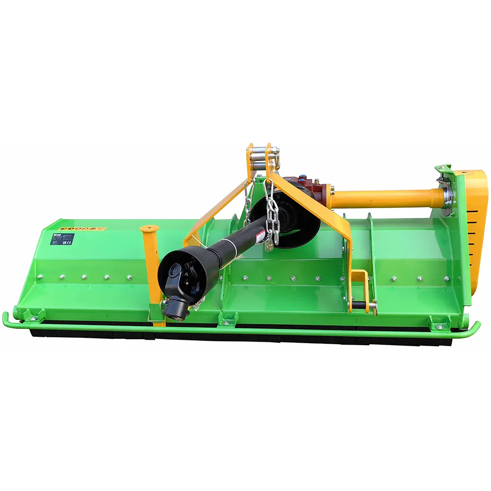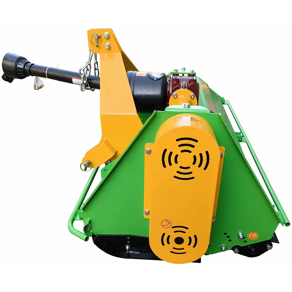 Service is straightforward: a belt-tension inspection window lets you check tension in seconds, and the replaceable counter knife plus front safety flaps improve chopping efficiency while minimizing debris ejection. The mower ships fully assembled in a wooden crate; install the quick-attach CAT-1 hitch (CAT-2 bushings included), fit the safety bars and PTO, and you’re ready to mow ~1.7–3.4 acres/hour depending on conditions.